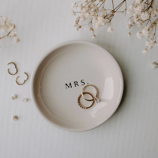 Sweet Water DecorEvery bride or bride to be will swoon over their new Mrs. Jewelry dish! Our stoneware trinket tray is great for placing her wedding ring, earrings...