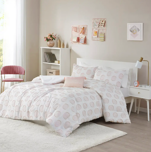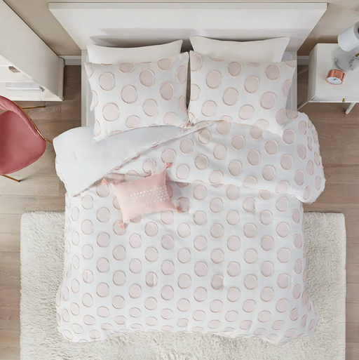 OlliixThis comforter features an all over clipped jacquard blush dot design on a white textured fabric, creating a playful modern look. Matching shams c...