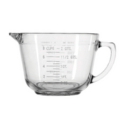 This 2QT measuring bowl that doubles as a batter bowl is made with glass and embossed with measurements.