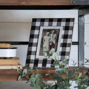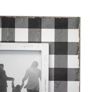 This 4x6" picture frame features a timeless plaid pattern. A worn white becomes the background for a classic black buffalo plaid pattern with areas of distressing throughout. Your favorite photo memory will pop from the white accent border added around the photo opening. The glass front will help to protect your photo from dust and other damage. Easily styled on a shelf, desk, side table, mantel, or a hung on a wall for a versatile display anywhere in your home.