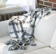 Our Jackie throw features a simple plaid woven pattern, soft melange yarns and a large tassel finish to each edge. With a classic black and white color palette, this versatile throw is great for layering.