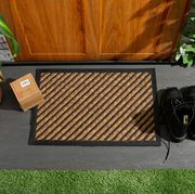 This heavy duty non slip door mat offers a quick and easy way to create an inviting home for your guest right from their very first step inside. It features a neutral color combo and a diagonal stripe pattern.