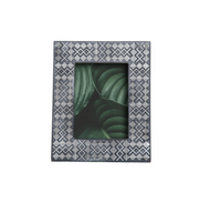 This 5x7" picture frame features a bold crisscross diamond design making this lovely wooden frame an excellent addition to any space. The glass front will help to protect your photo from dust and other damage. Easily styled on a shelf, desk, side table, or mantel for a versatile display anywhere in your home.