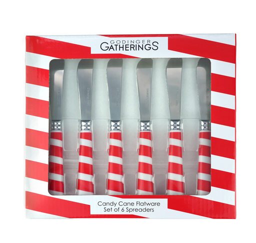 Don't forget to spread the holiday spirit with our Candy Cane Spreaders! Each set includes 6 spreaders.  Imported