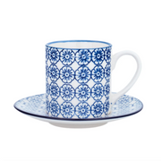 Enjoy an espresso in style and add a dash of instant color to your kitchen with our blue floral espresso cup and saucers. Start your day with your favorite coffee blend and enjoy rich aromas with your new bright espresso set.