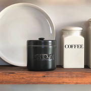 An essential for any kitchen, this black grease container is made of ceramic and features a classic minimalist design.