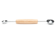 This melon baller features 2 scooper sizes, one on each end. Made of steel and wood, use to scoop your favorite melons or assorted fruit to create a beautiful fruit salad that your guest will surely love.