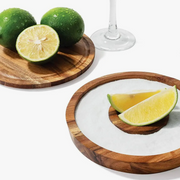 The 3-in-1 rimmer features a lid that doubles as a cutting board with juice channel when flipped over. Place the clean dry lid on the rimmer to act as a salt cellar for storage when not in use.