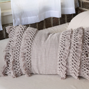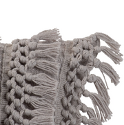 The Grace pillow is brilliantly textured, this gray cotton pillow has a sweet and simple cotton center that fades into braided tassels. Perfect for accenting with other pillows or for use as a stand alone statement.