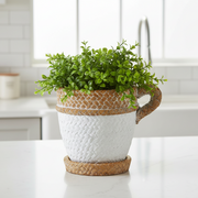 It's designed with a rope-like handle and textured basket weave pattern, each rustic planter has drainage hole and comes with a drip tray.