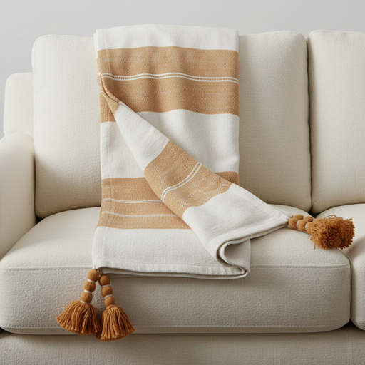 Foreside Home & GardenIntroducing a neutral throw that features a white base with tan and black, bold woven stripes that are soft to the touch. Two layers of white fring...
