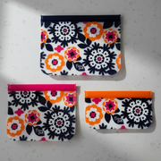 This 3 piece food storage bag set is perfect for snacks, fruits, veggies, sandwiches, and more! It's made from premium, PEVA material known for durability and it's tear resistance. These eco friendly bag set also features a colorful floral print.