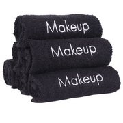 This set of 6 makeup remover washcloths are black in color and are the perfect size. They feature white embroidering and are made from 100% cotton. These towels are soft and highly absorbent making them easy to use.