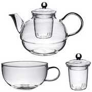 All components made from heat-resistant glass. The set features a build in removable strainer for tea leaves.