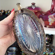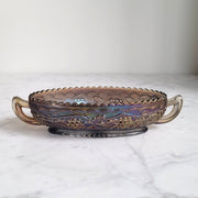 Perfect for collectors of antique glassware or those who appreciate the finer things in life, our Vintage Carnival Glass Candy Dish is a treasure to behold. Embrace the nostalgia and elegance of days gone by with this exquisite piece that brings a touch of vintage glamour to any room.