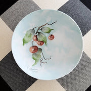 This Vintage Cherry Dish features a cherry motif including the Marion 1991 signature on a light blue and white background.