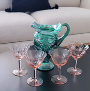 Sip in elegance! Introducing our Vintage Pink Depression Glass Champagne Coupes from the Roaring '20's!